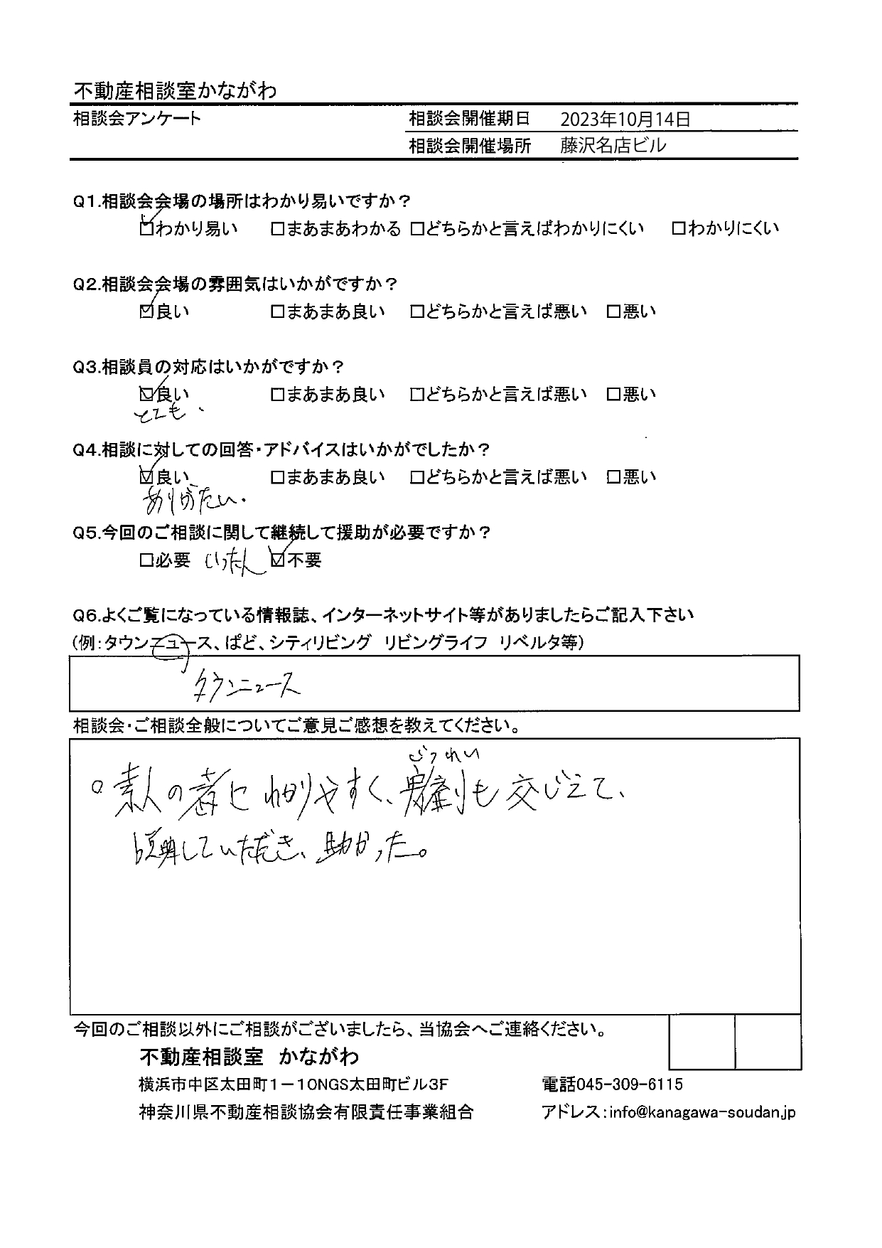 TOP > ご相談者の声 > 10/14 藤沢名店ビル