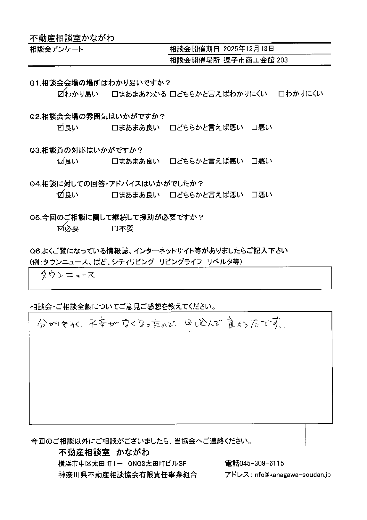 TOP > ご相談者の声 > 12/13 逗子市商工会館